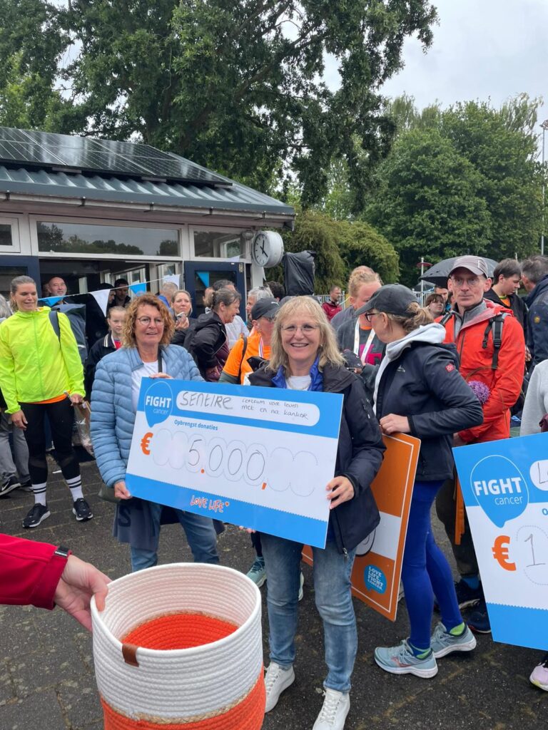 Gisteren ontvingen Aukje Bakker (initiatiefneemster van Sentire โ€“ centrum voor leven met en na kanker) en Marja van Strien (voorzitter van Sentire) een cheque van maar liefst โ‚ฌ๐Ÿ“.๐ŸŽ๐ŸŽ๐ŸŽ. Wat een bijzonder mooi bedrag!