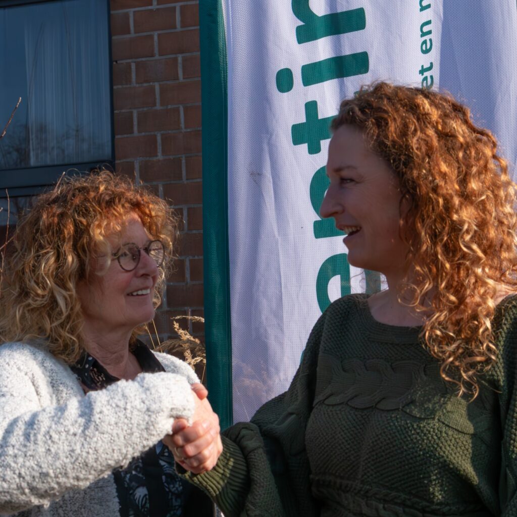 ๐Ÿ“ธ Op de tweede foto: de handdruk tussen Karin Kouwenhoven en Aukje Bakker, initiatiefneemster van Stichting Sentire, na de ondertekening van de partnerovereenkomst.