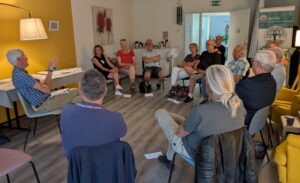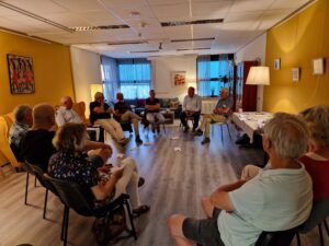 Maandagavond 14 juli vond bij Sentire de eerste van drie thema-avonden plaats voor mannen met prostaatkanker, hun partners, familieleden en andere betrokkenen. Acht lotgenoten en twee partners namen deel aan deze avond in een open en respectvolle sfeer. Ook was een oncologisch verpleegkundige van ZorgBrug, werkzaam in het Groene Hart Ziekenhuis, aanwezig. Haar collega moest zich helaas op het laatste moment afmelden.
