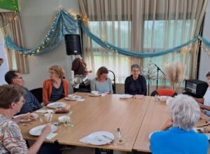 We begonnen de avond met een korte rondleiding in het Vijfde Huis en de enthousiaste reacties op de locatie waren veelbelovend. Daarna genoten we van een eenvoudige maar heerlijke maaltijd: “Sentire mosterdsoep met stokbrood en vier verschillende hartige taarten en cake toe”, alle gerechten uit de keuken van bestuursleden.