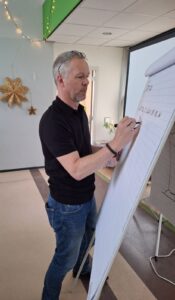 Na een kennismakingsronde kregen we een introductie van de werkvorm Clean Language. Clean Language biedt een breed scala aan tools en modellen, maar de essentie ligt in de attitude waarmee je de interactie met anderen vormgeeft: